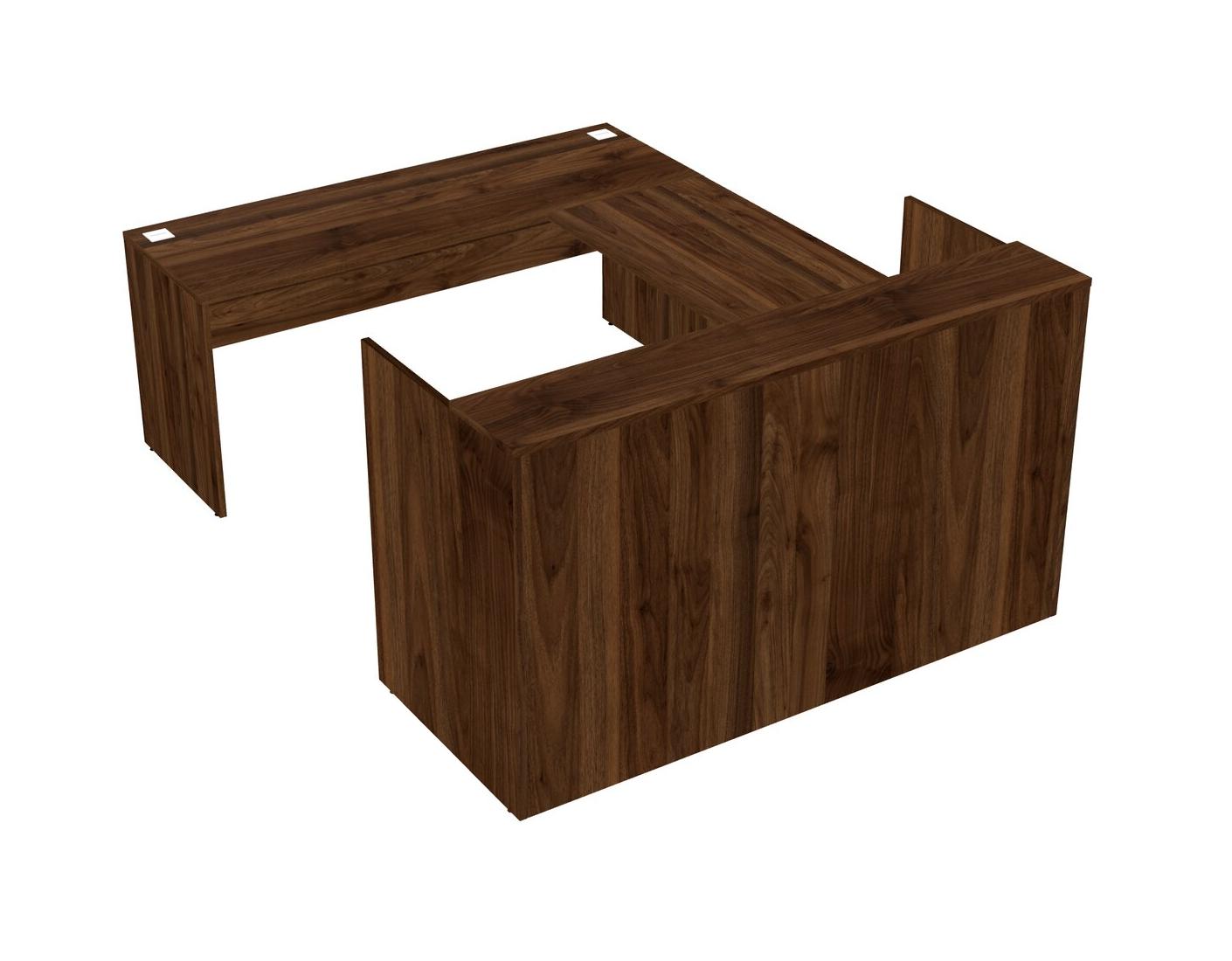 Comptoir D'accueil Modulaire En Noyer Columbia + Tiroirs Mobiles En Bois + Bureau Crédence