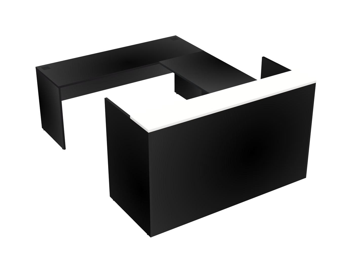 Comptoir D'accueil Modulable Blanc + Tiroirs Mobiles En Bois + Bureau Crédence
