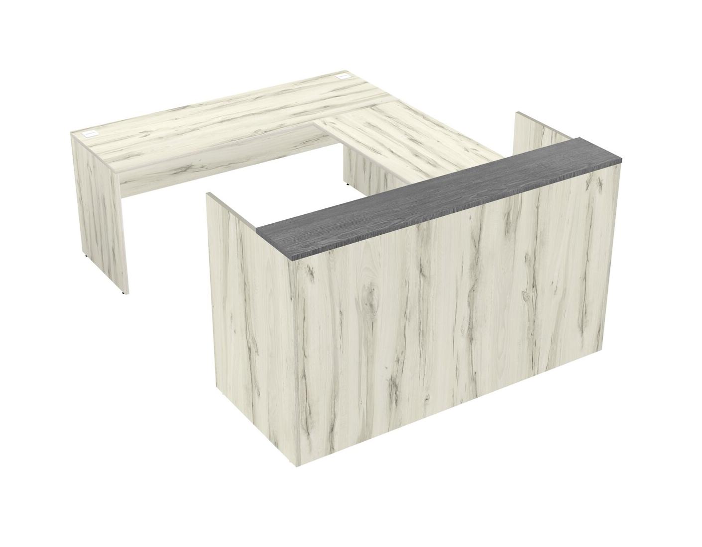 Bureau D'accueil Modulaire Gris + Bureau Crédence