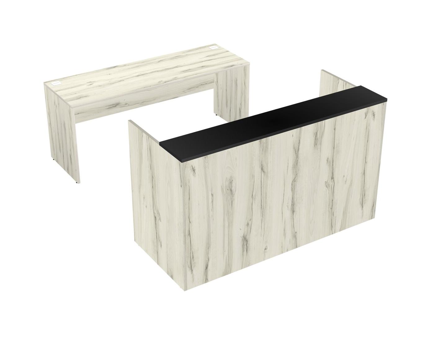 Comptoir D'accueil Modulaire Noir + Tiroirs Mobiles En Bois + Bureau Crédence