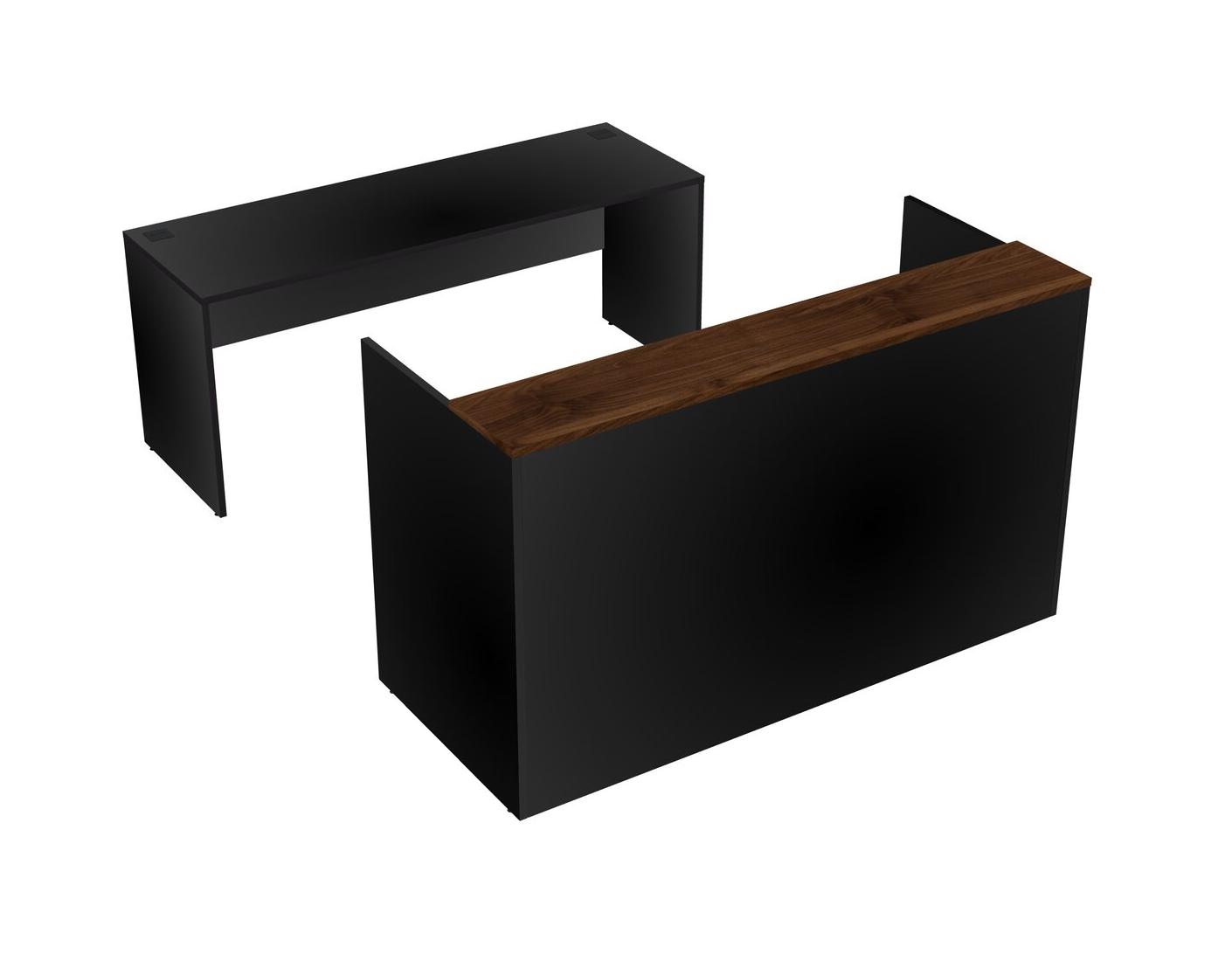 Comptoir D'accueil Modulaire En Noyer Columbia + Tiroirs Mobiles En Bois + Bureau Crédence