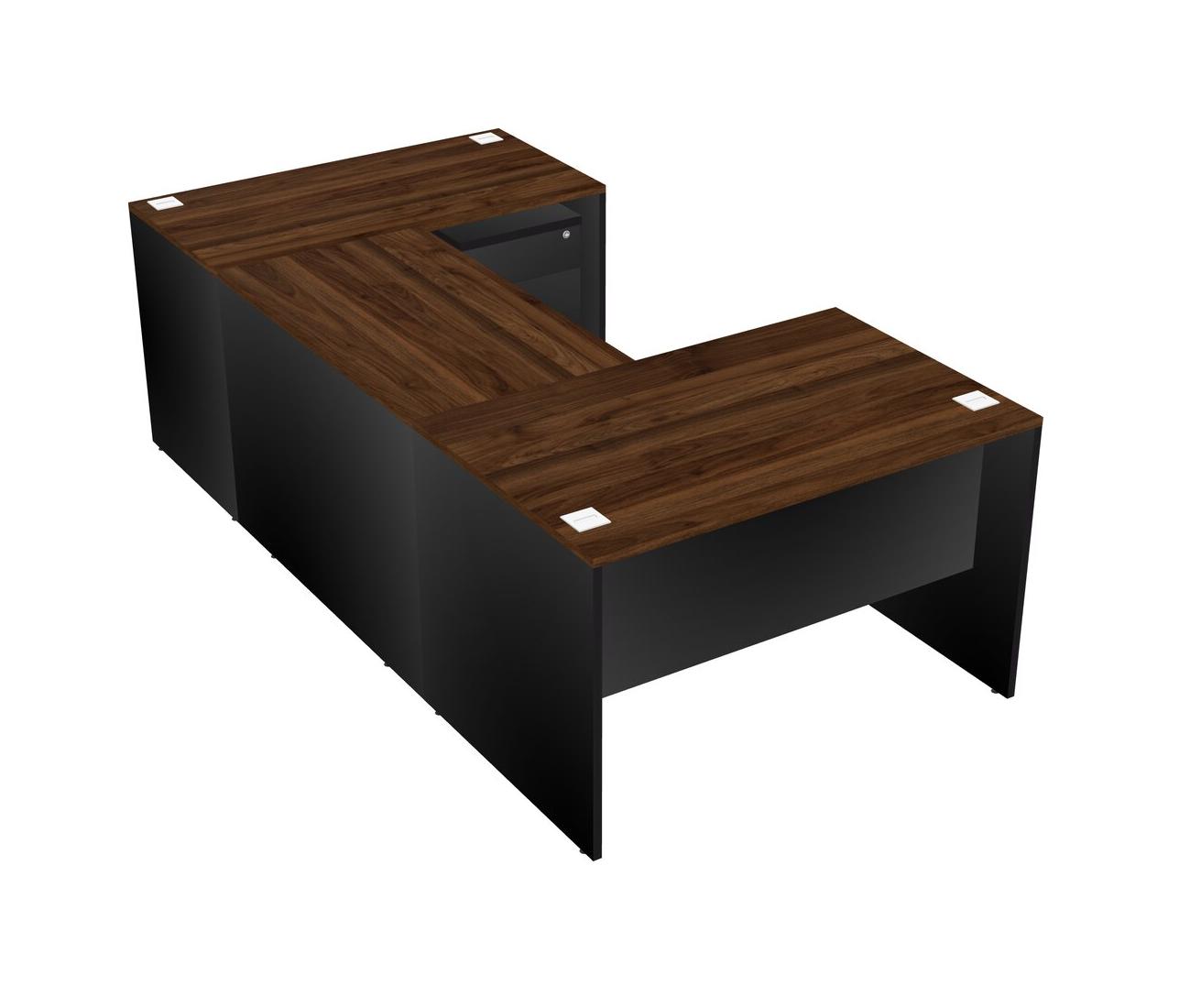 Bureau En U Avec Crédence Et Tiroirs Mobiles En Bois