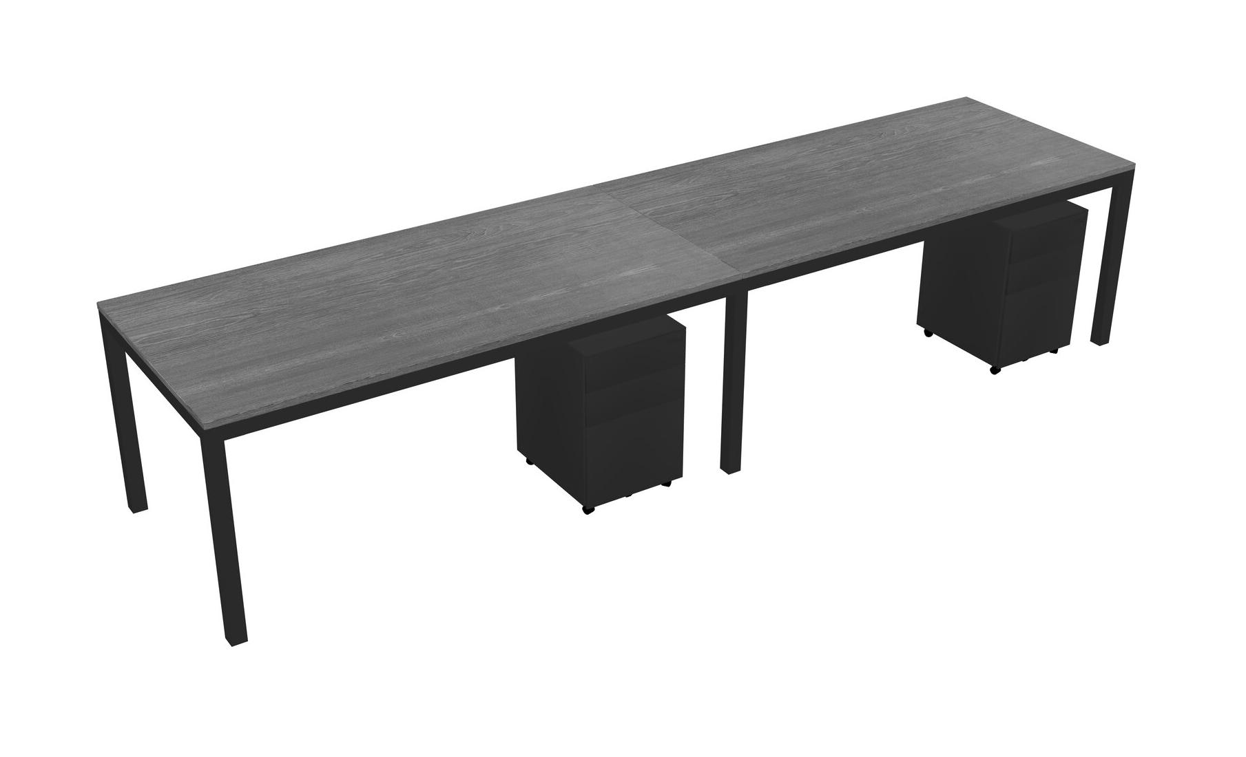 Bureau Rectangulaire Gris Avec Tiroirs Mobiles En Métal Pour 2 Personnes
