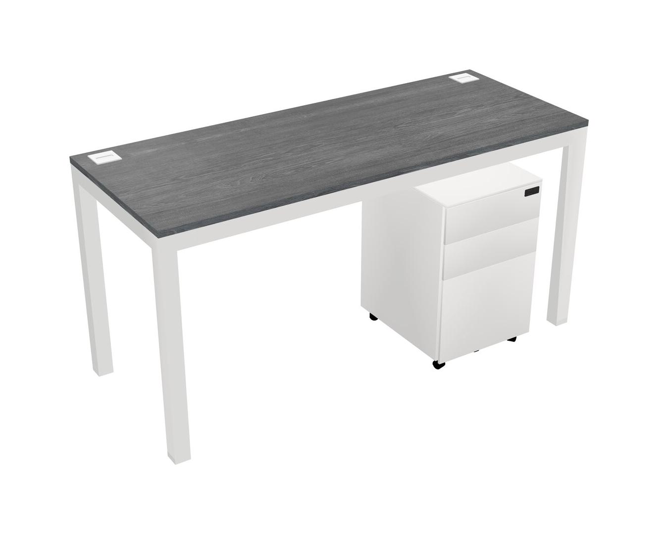 Bureau Rectangulaire Gris Avec Tiroirs Mobiles En Métal Pour 1 Personne