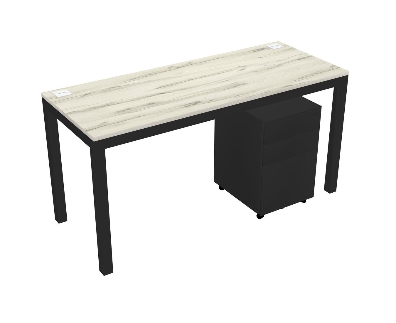 Bureau Rectangulaire Heinne Holz Avec Tiroirs Mobiles En Métal Pour 1 Personne