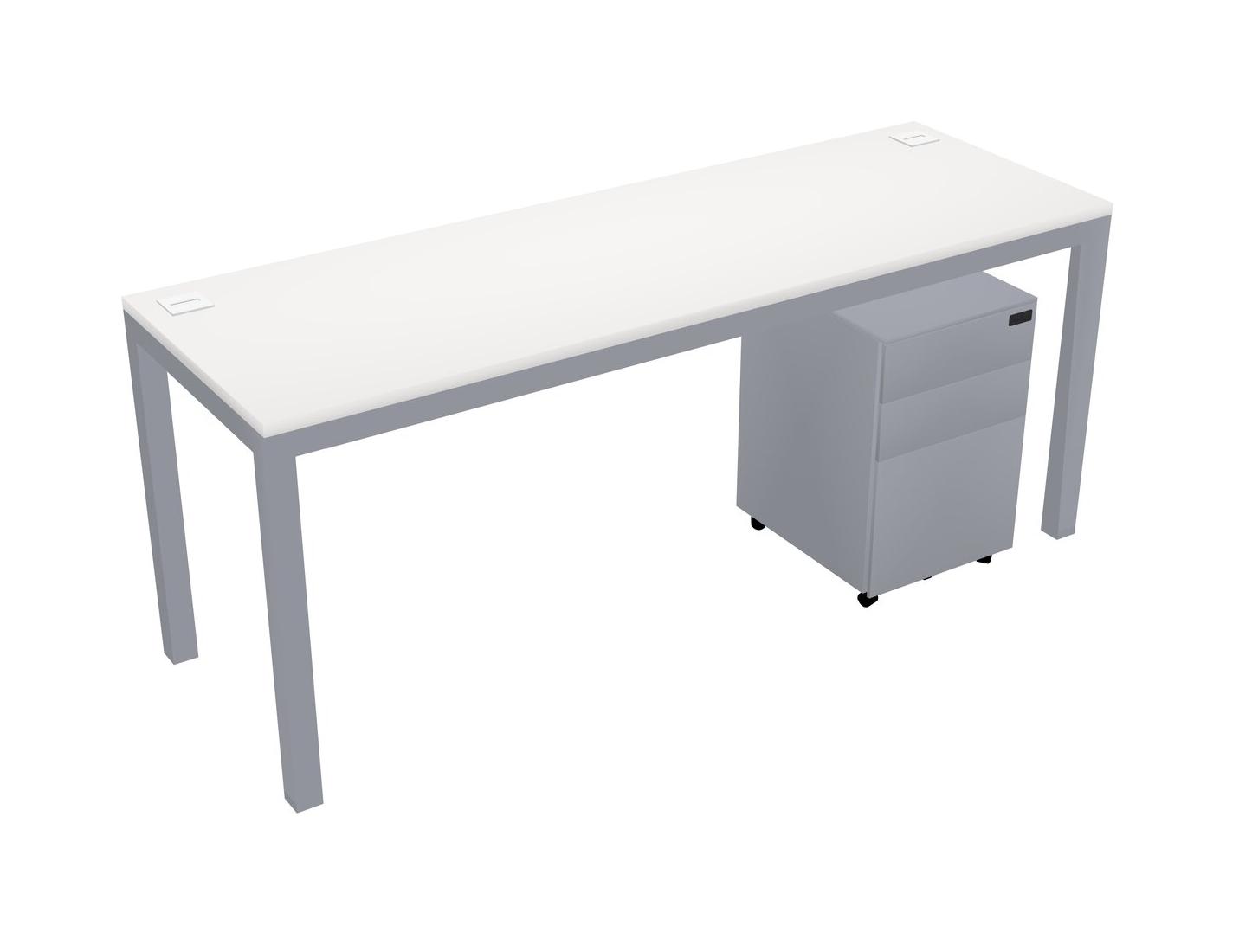 Bureau Rectangulaire Blanc Avec Tiroirs Mobiles En Métal Pour 1 Personne