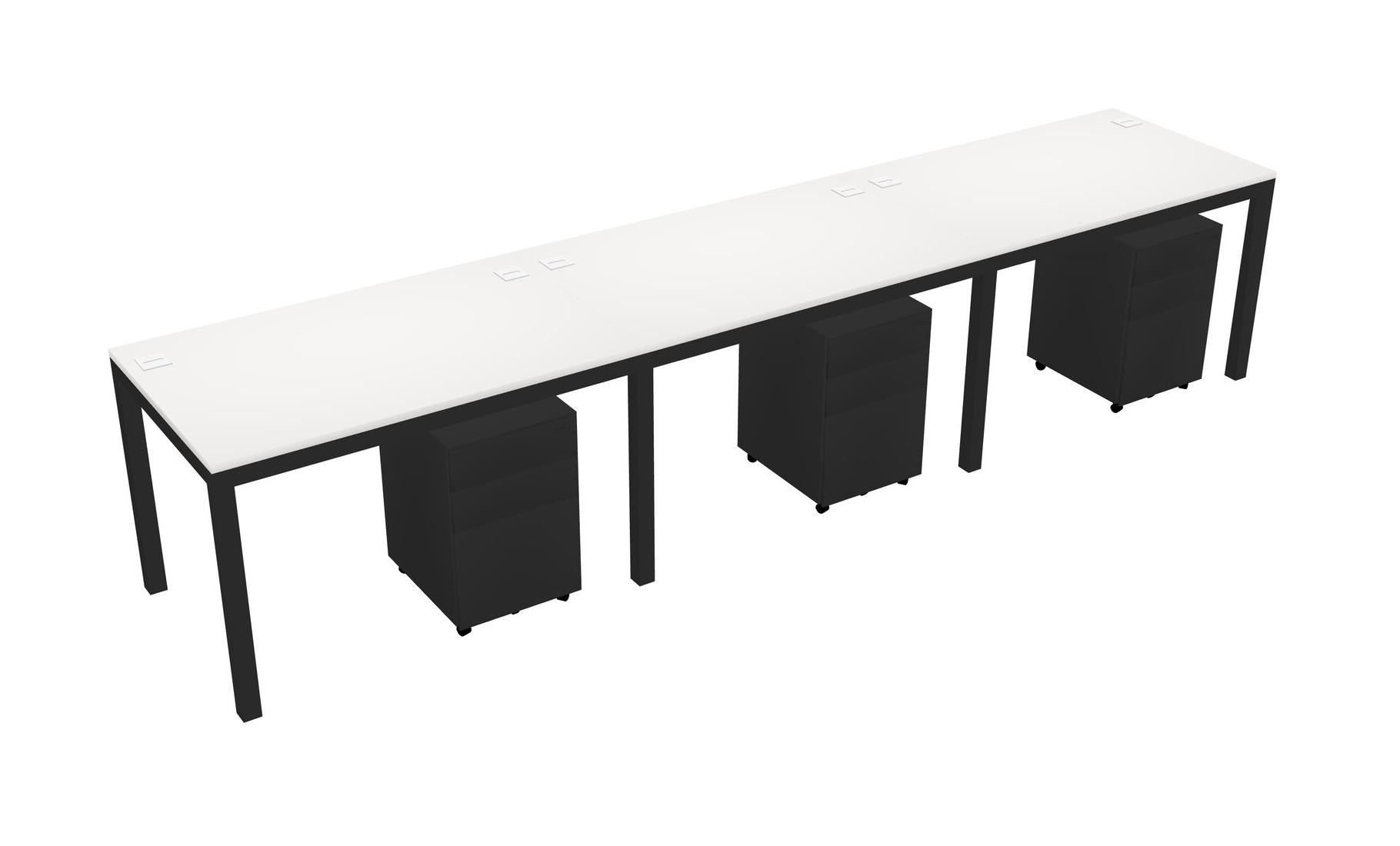 Bureau Rectangulaire Blanc Avec Tiroirs Mobiles En Métal Pour 3 Personnes