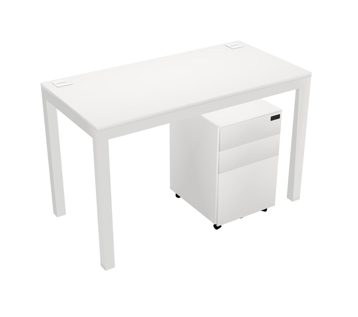 Bureau Rectangulaire Blanc Avec Tiroirs Mobiles En Métal Pour 1 Personne