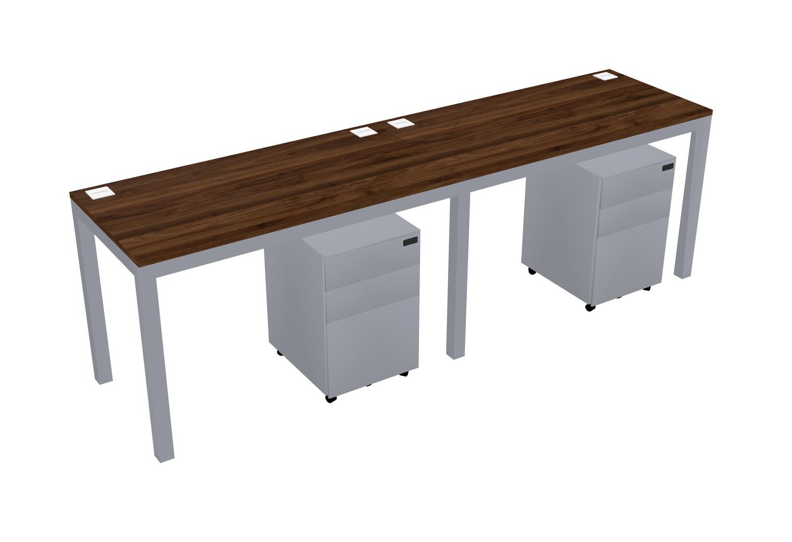 Bureau Rectangulaire En Noyer Columbia Avec Tiroirs Mobiles En Métal Pour 2 Personnes