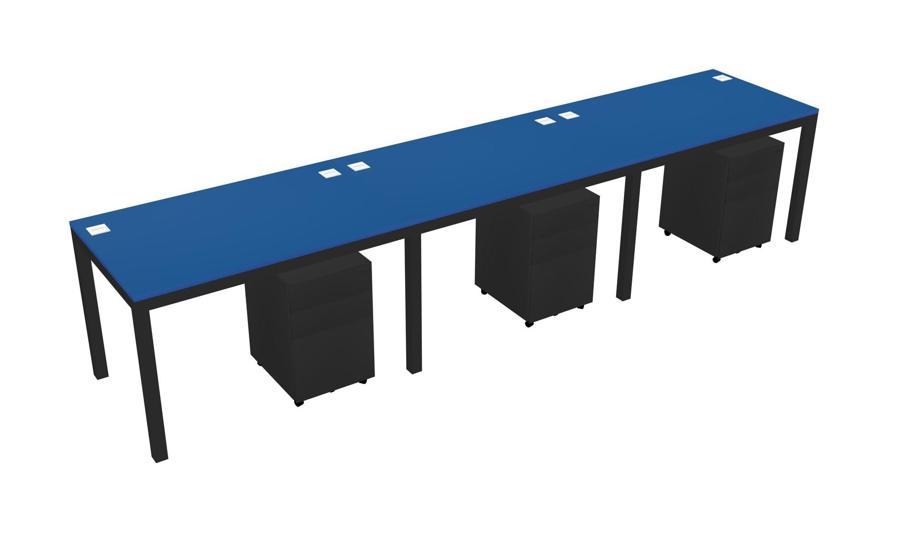 Bureau Rectangulaire Prism Blue Avec Tiroirs Mobiles En Métal Pour 3 Personnes