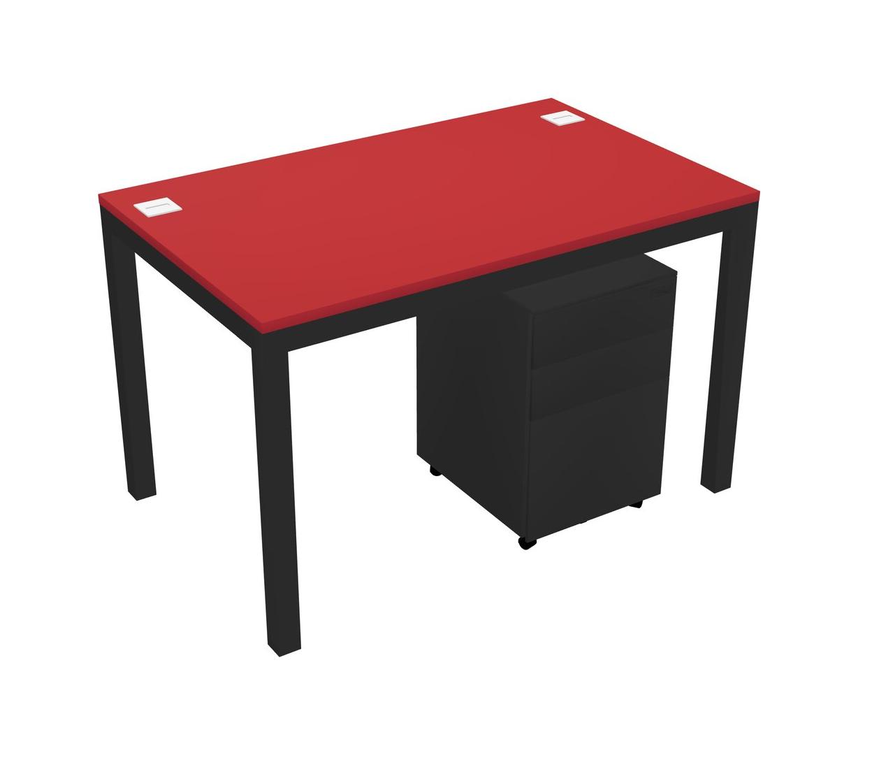 Bureau Rectangulaire Prism Red Avec Tiroirs Mobiles En Métal Pour 1 Personne