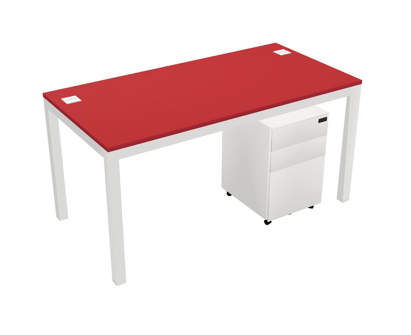 Bureau Rectangulaire Prism Red Avec Tiroirs Mobiles En Métal Pour 1 Personne
