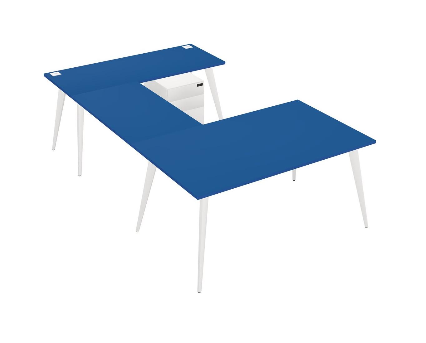 Bureau En U Prism Blue Avec Tiroirs Mobiles En Métal