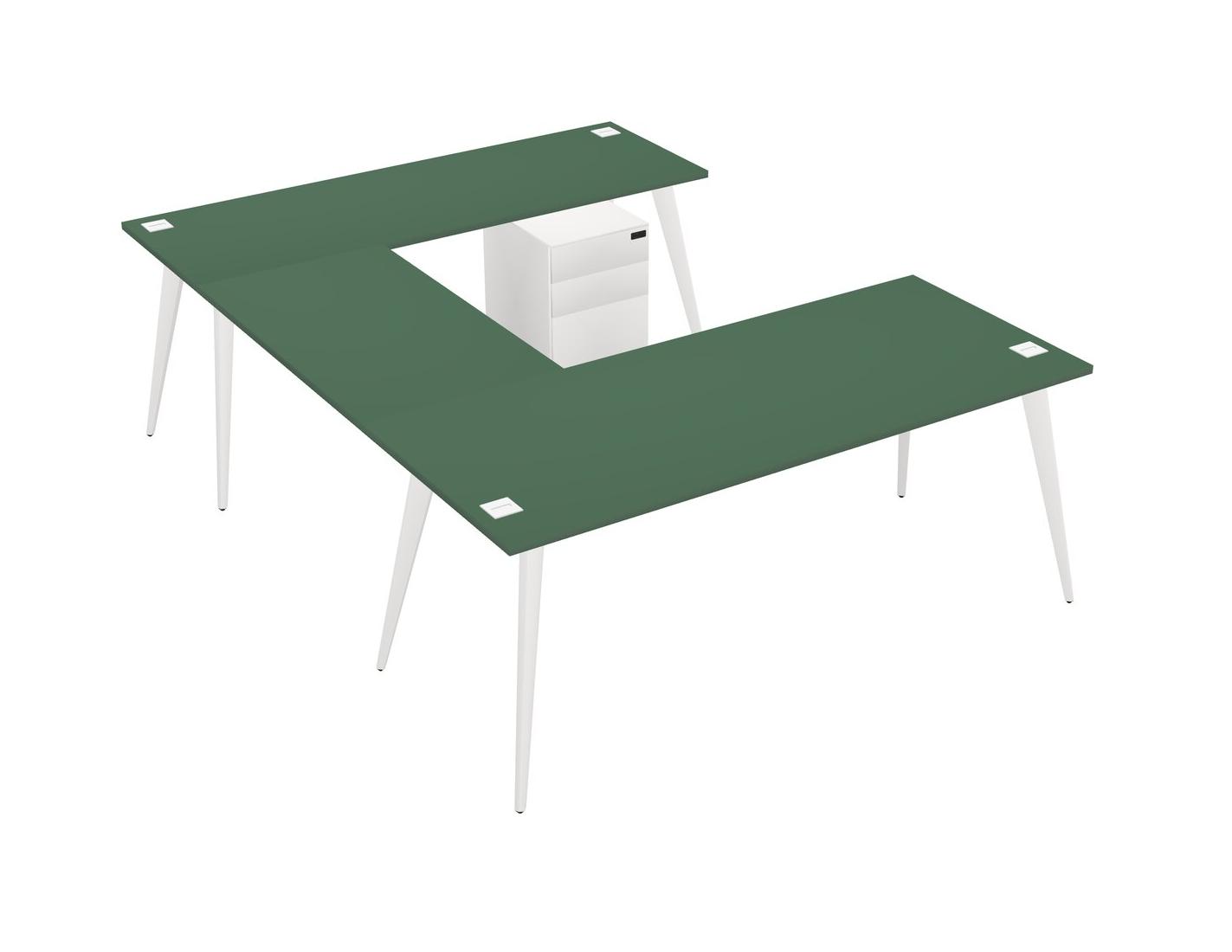 Bureau Vert En U Avec Tiroirs Mobiles En Métal