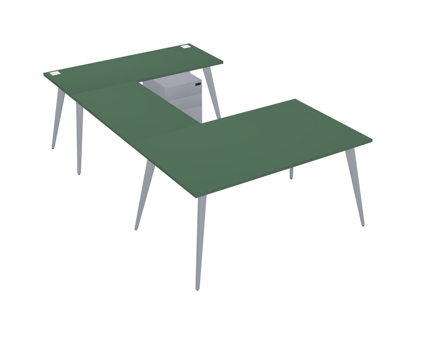 Bureau Vert En U Avec Tiroirs Mobiles En Métal