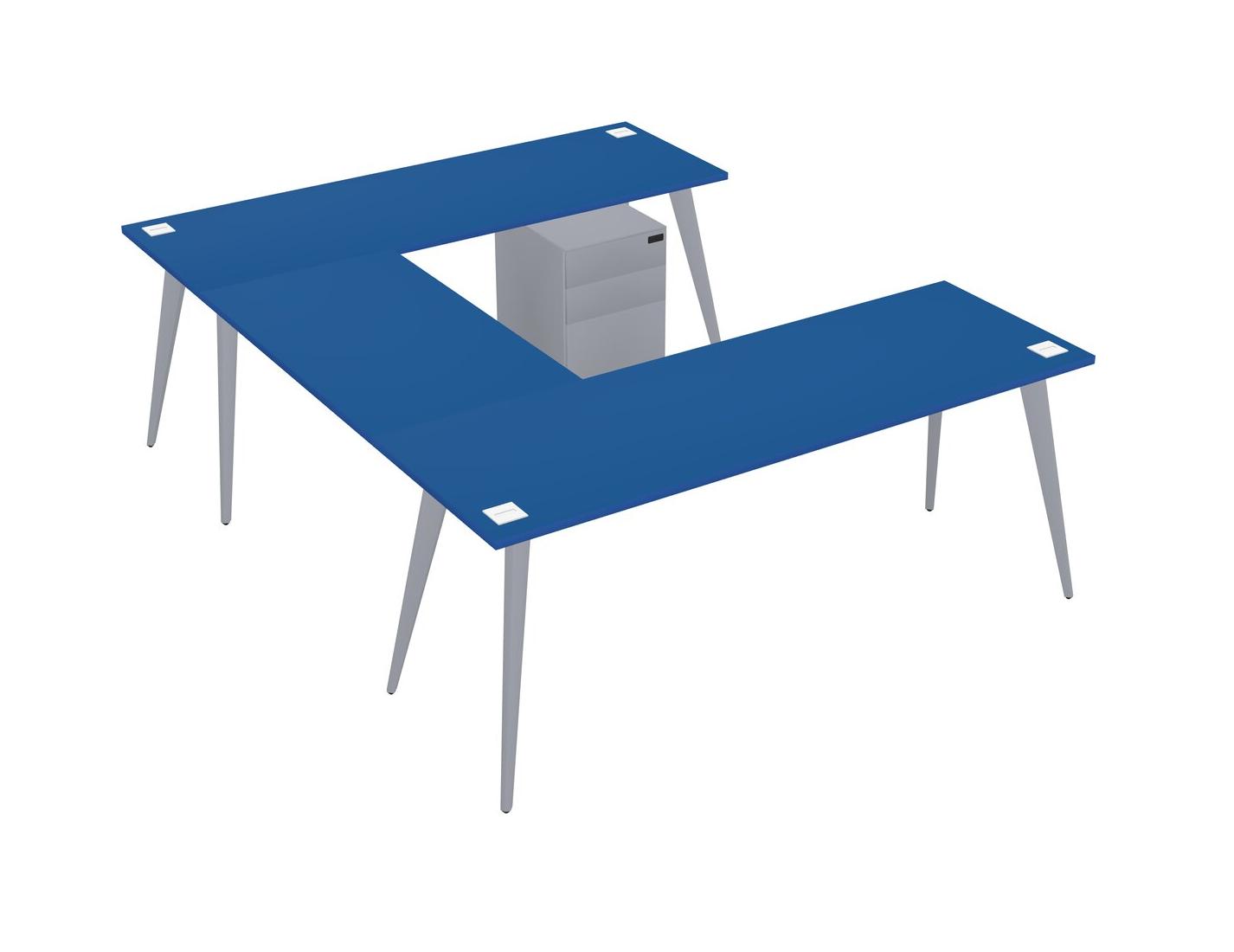 Bureau En U Prism Blue Avec Tiroirs Mobiles En Métal