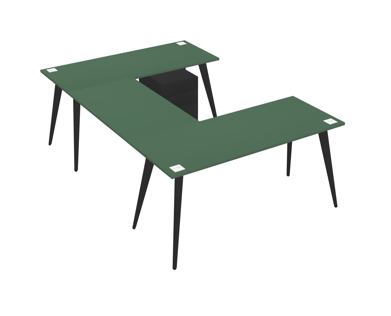Bureau Vert En U Avec Tiroirs Mobiles En Métal