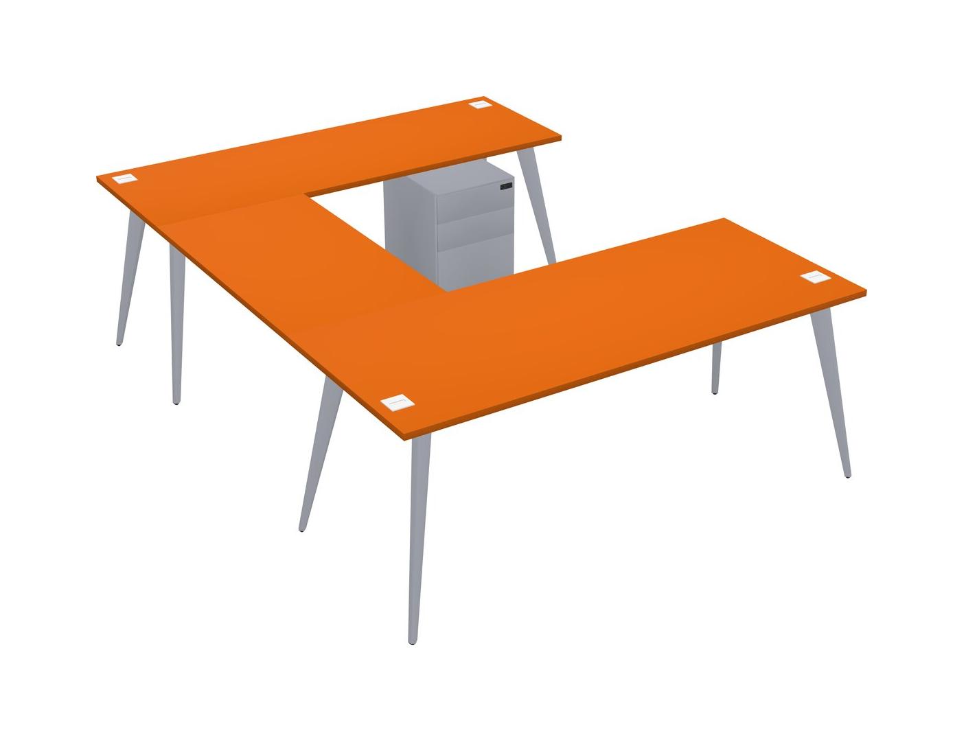Bureau Orange En U Avec Tiroirs Mobiles En Métal