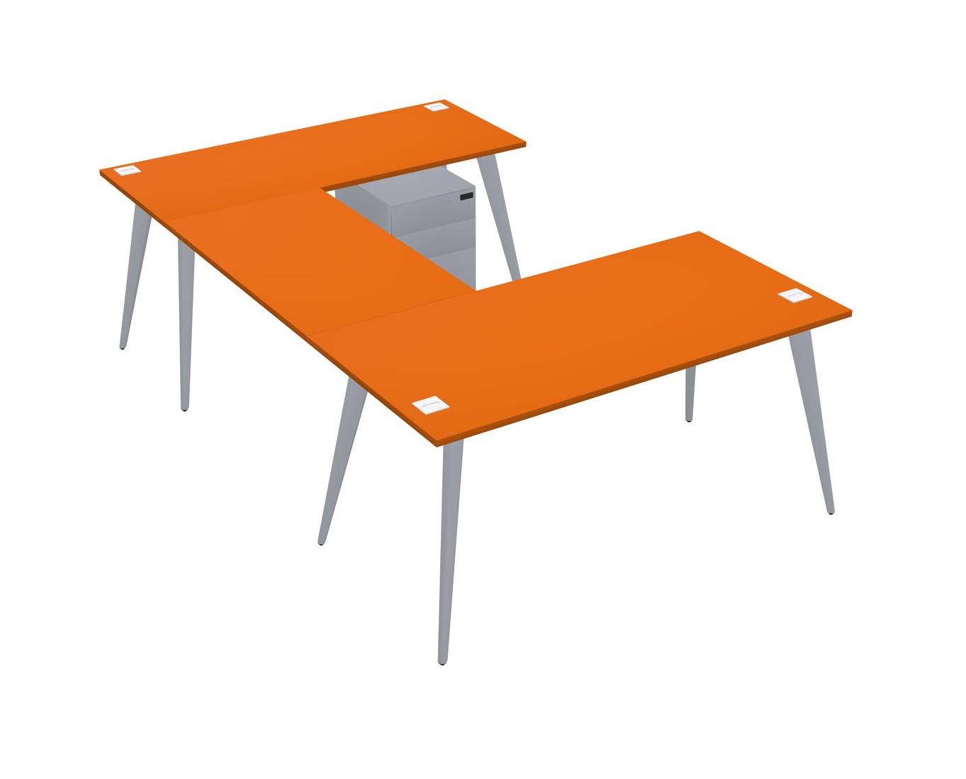 Bureau Orange En U Avec Tiroirs Mobiles En Métal