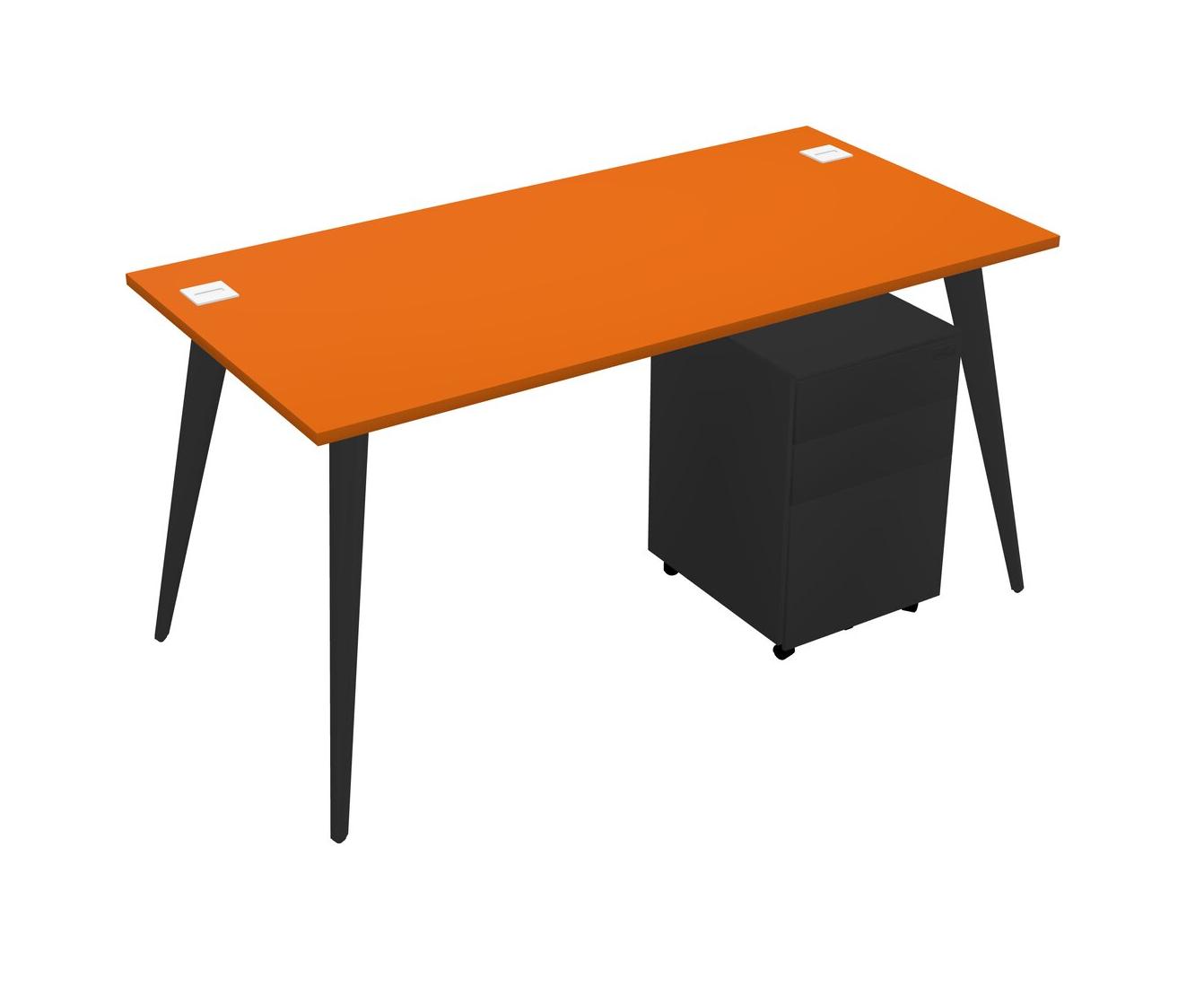 Bureau Rectangulaire Orange Avec Tiroirs Mobiles En Métal