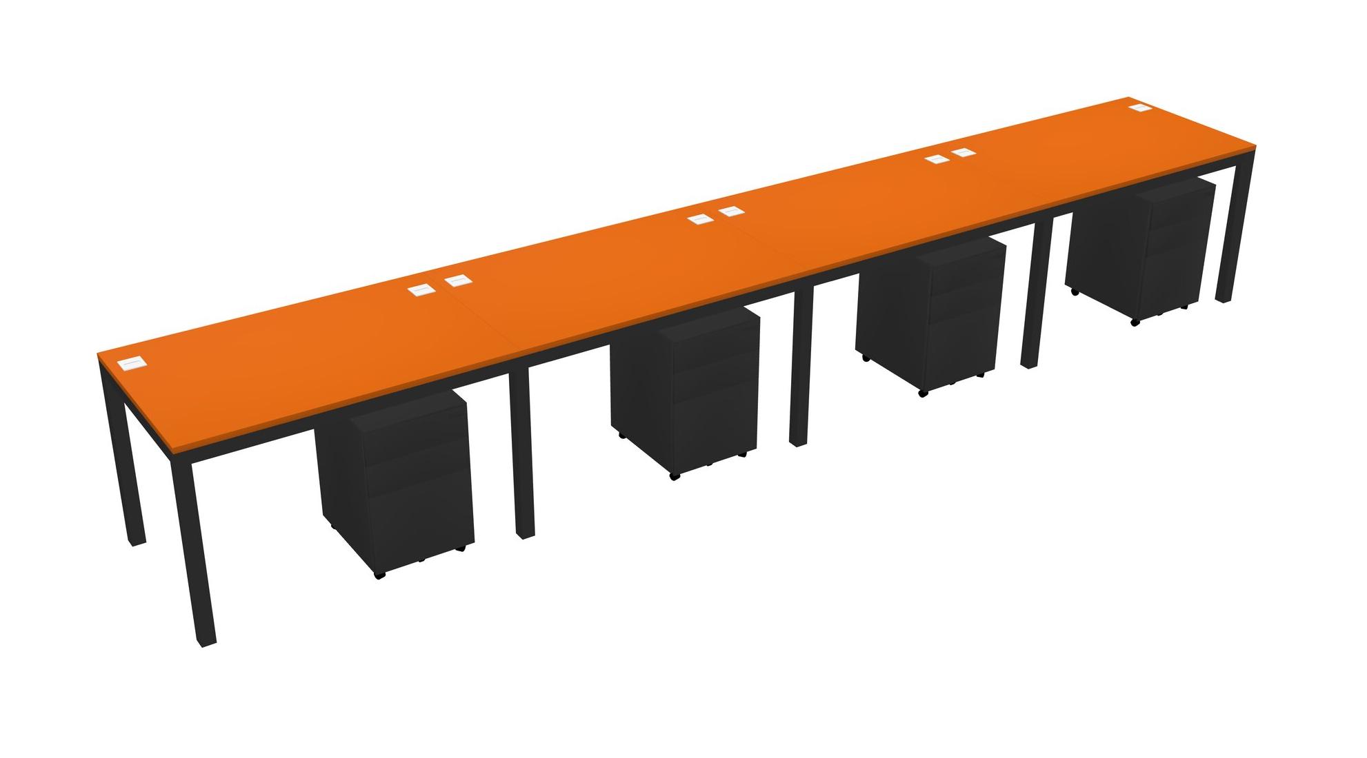 Bureau Rectangulaire Orange Avec Tiroirs Mobiles En Métal Pour 4 Personnes