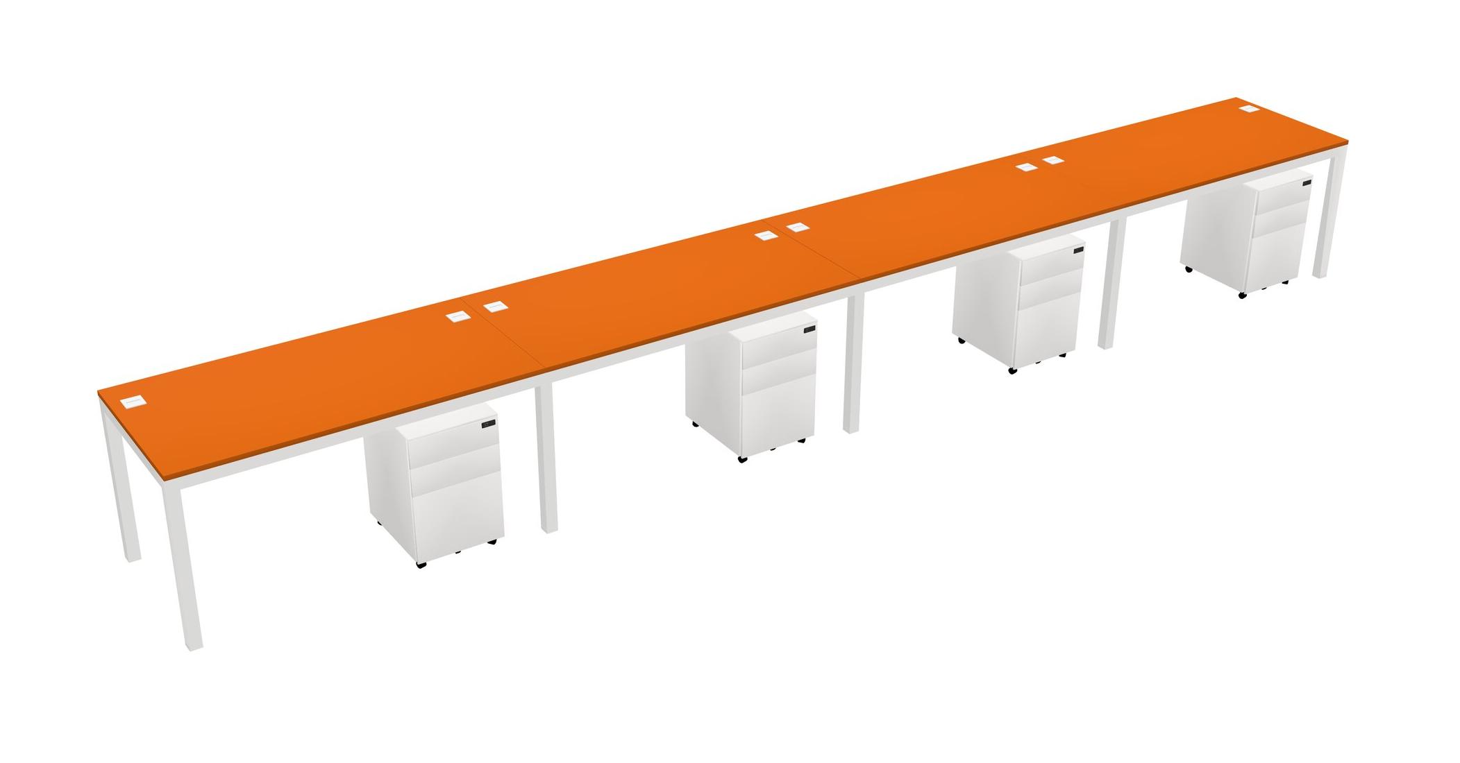 Bureau Rectangulaire Orange Avec Tiroirs Mobiles En Métal Pour 4 Personnes