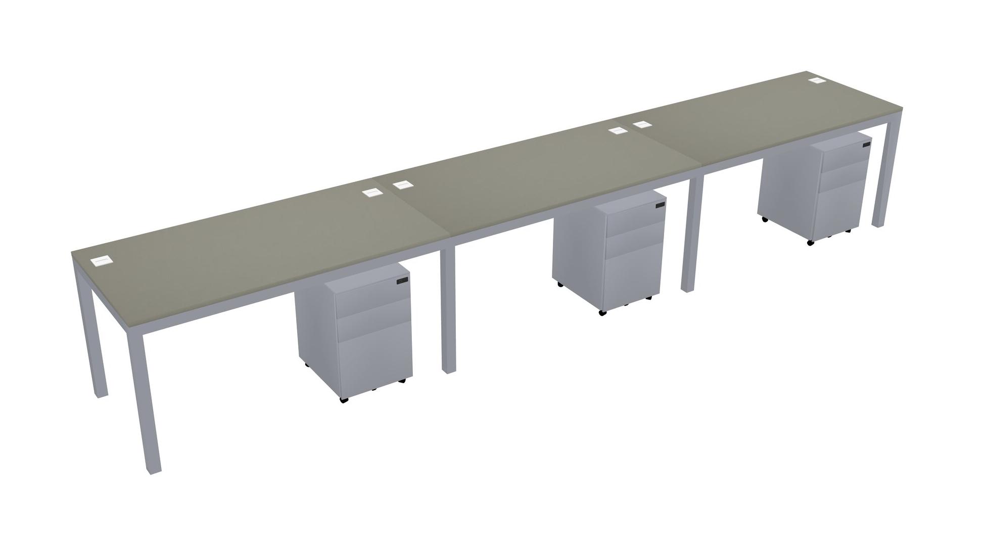 Bureau Rectangulaire Grey Shadows Avec Tiroirs Mobiles En Métal Pour 3 Personnes