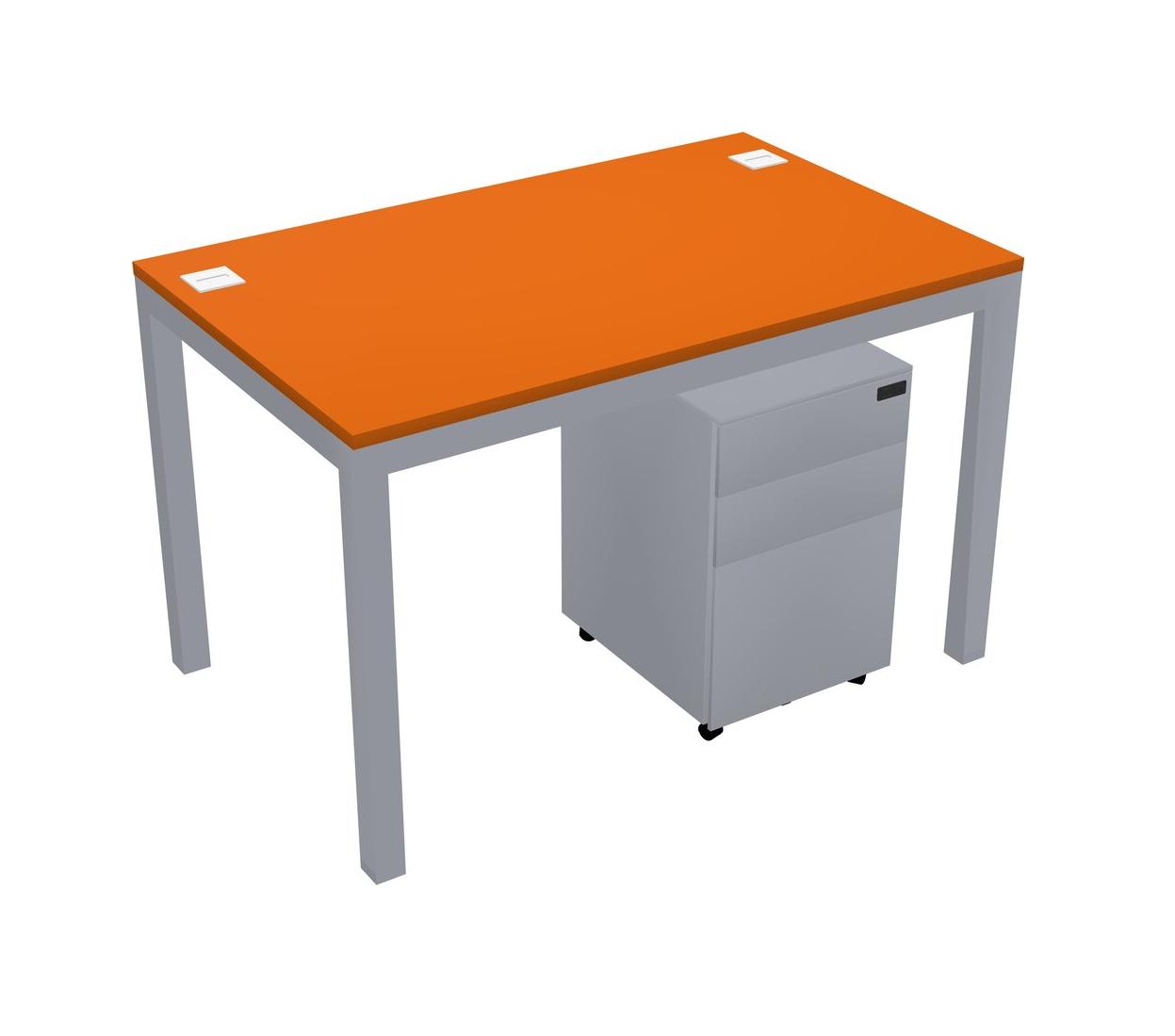 Bureau Rectangulaire Orange Avec Tiroirs Mobiles En Métal Pour 1 Personne
