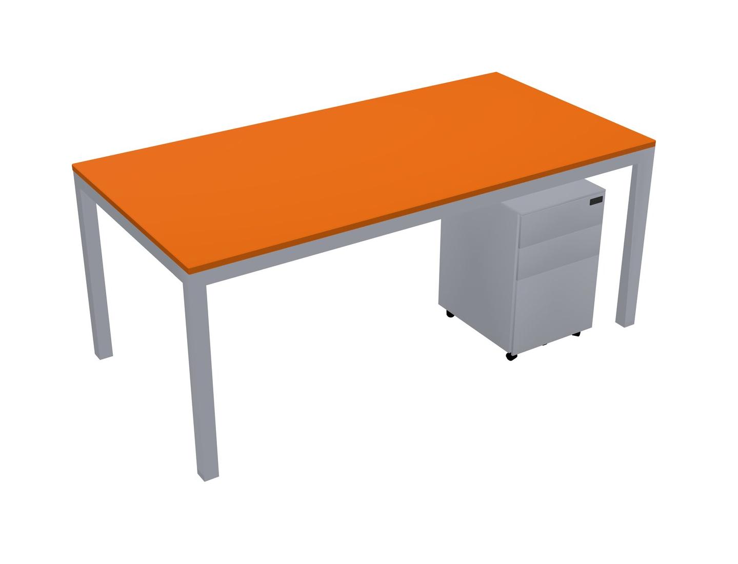 Bureau Rectangulaire Orange Avec Tiroirs Mobiles En Métal Pour 1 Personne