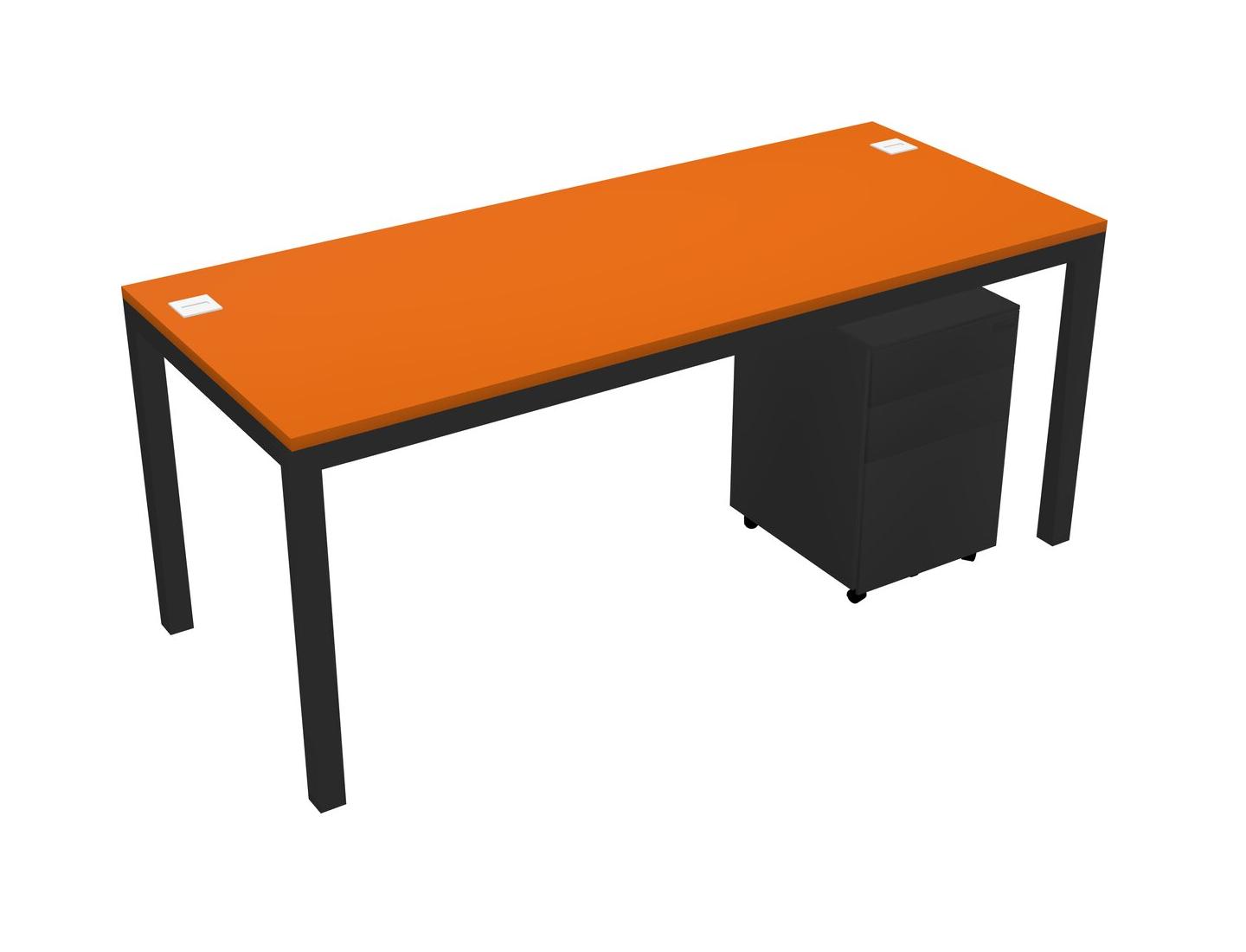 Bureau Rectangulaire Orange Avec Tiroirs Mobiles En Métal Pour 1 Personne
