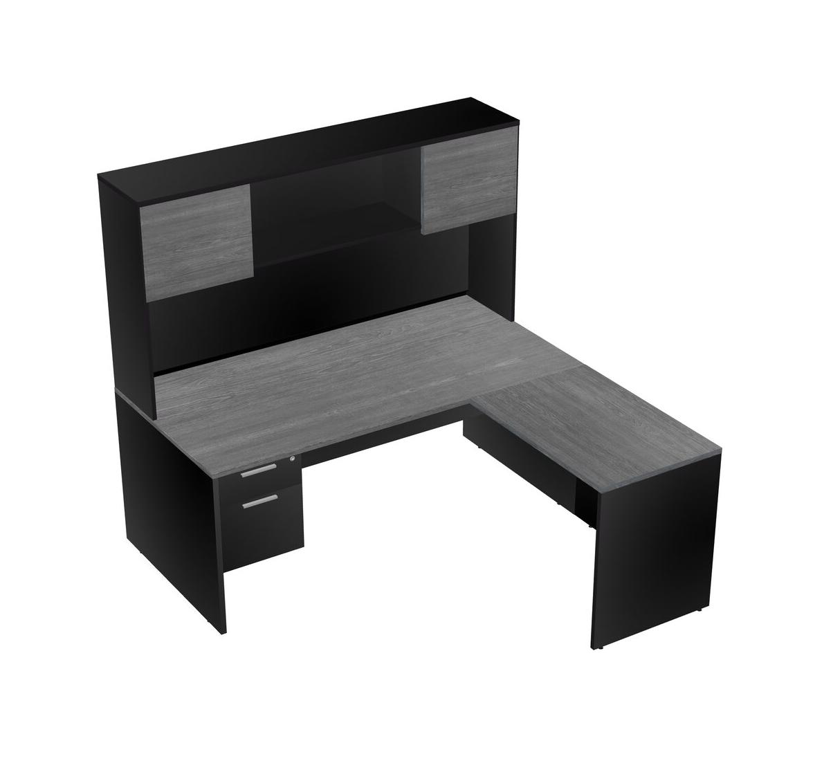 Bureau Gris En L Avec Tiroirs Suspendus Noirs Et Bahut Noir
