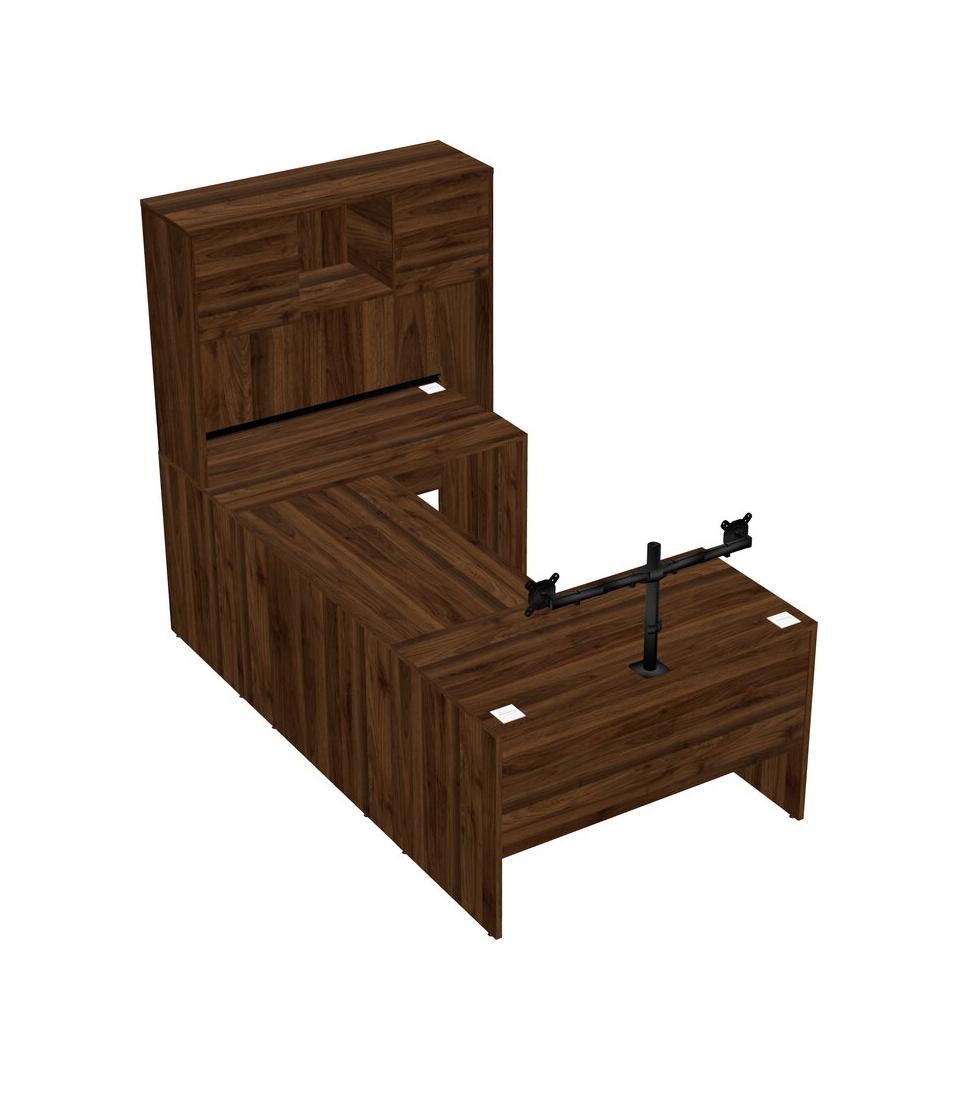 Bureau En U, Crédence, Bureau + Huche + Bras Pour écran (bras Doubles)