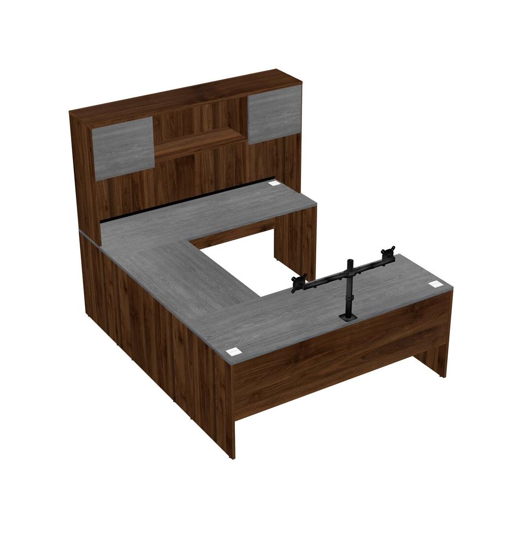 Bureau En U, Crédence, Bureau + Huche + Bras Pour écran (bras Doubles)