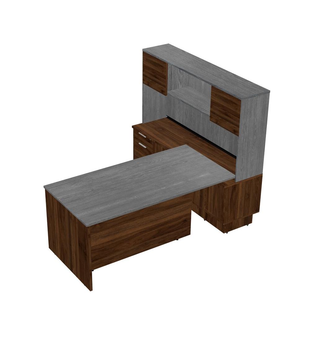 Bureau De Direction Gris Moderne Avec Armoire Basse à Portes Coulissantes Et Tiroirs Intégrés + Clapier