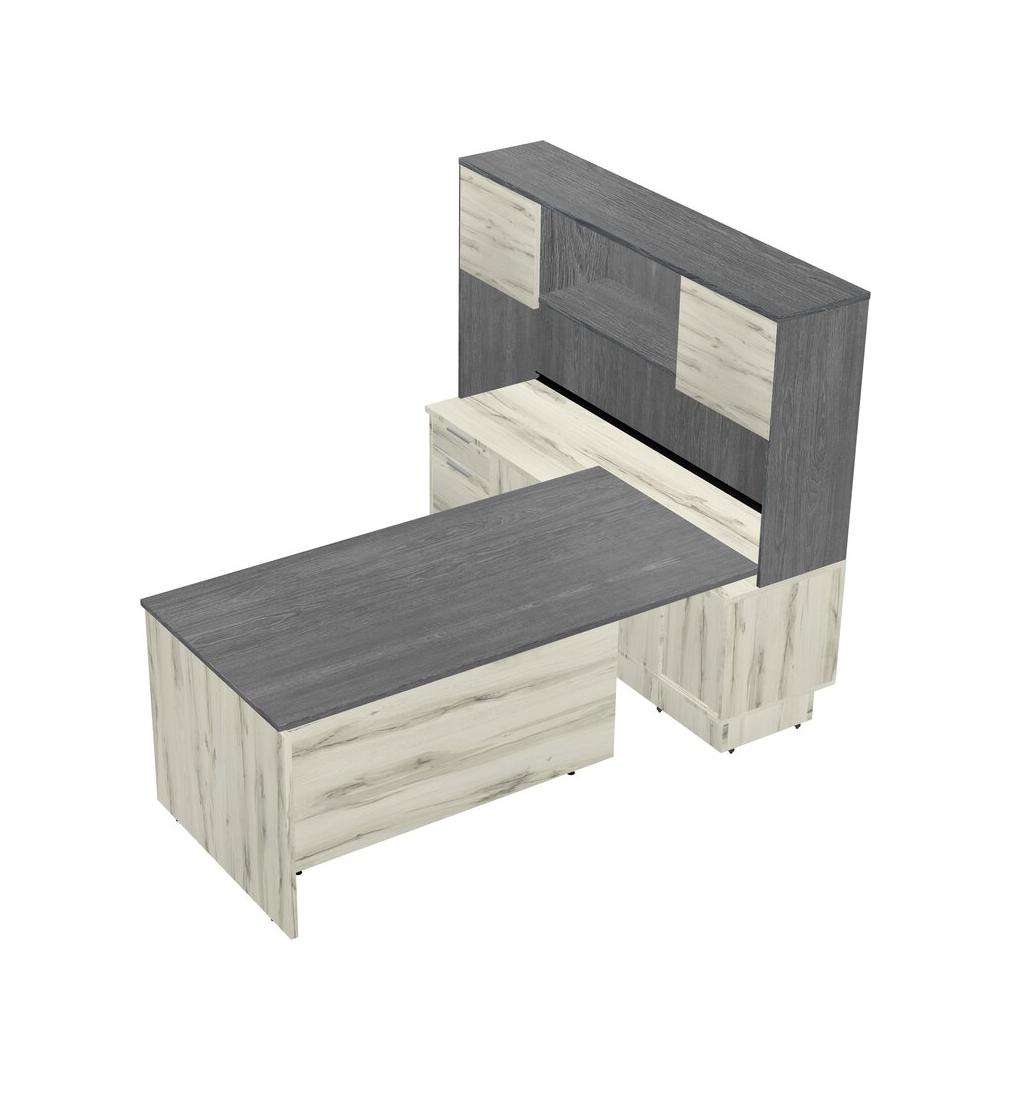 Bureau De Direction Gris Moderne Avec Armoire Basse à Portes Coulissantes Et Tiroirs Intégrés + Clapier