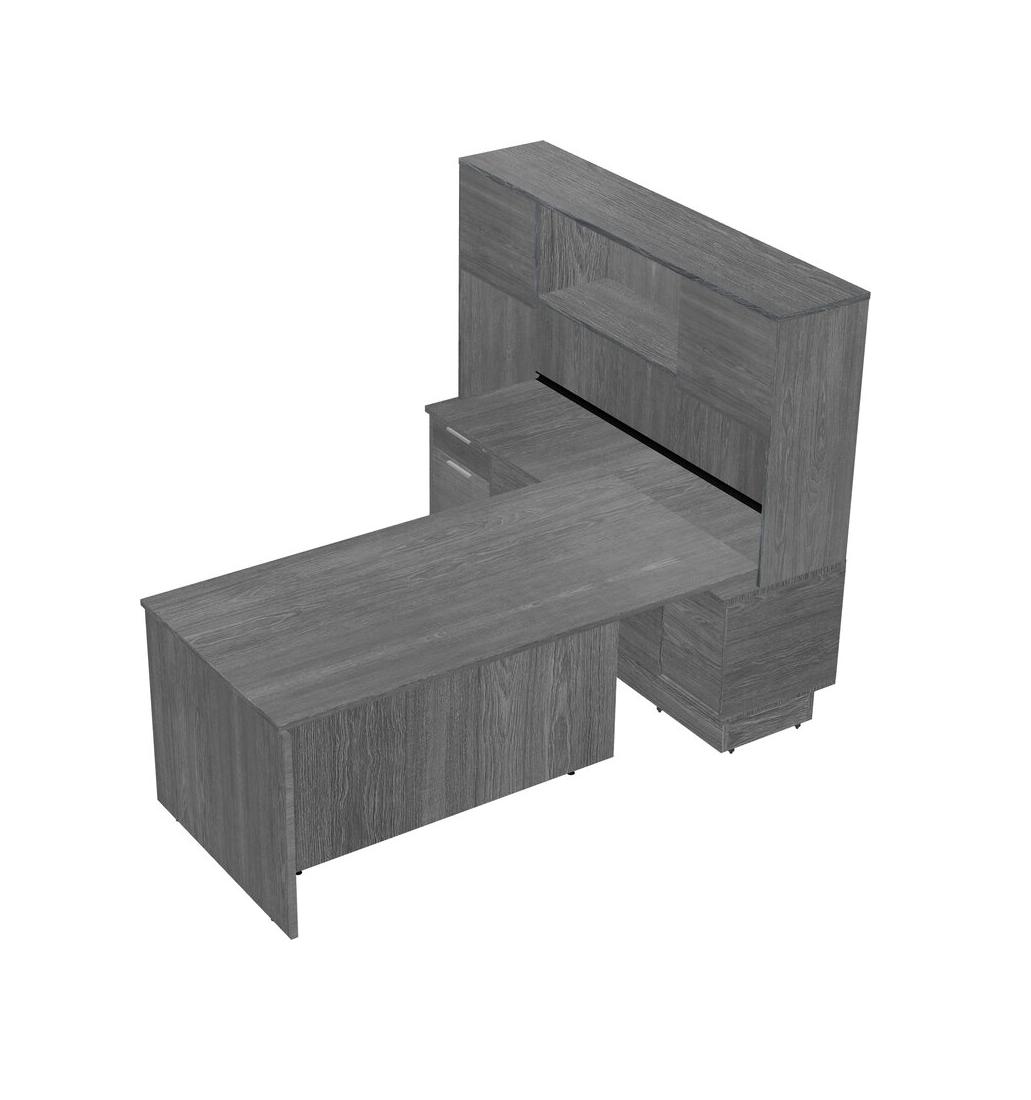 Bureau De Direction Gris Moderne Avec Armoire Basse à Portes Coulissantes Et Tiroirs Intégrés + Clapier