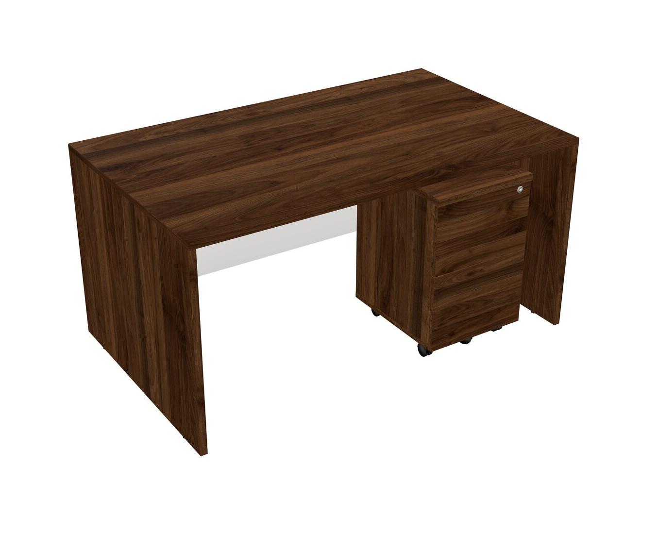 Bureau Rectangulaire En Noyer Columbia Avec Tiroirs Mobiles En Bois