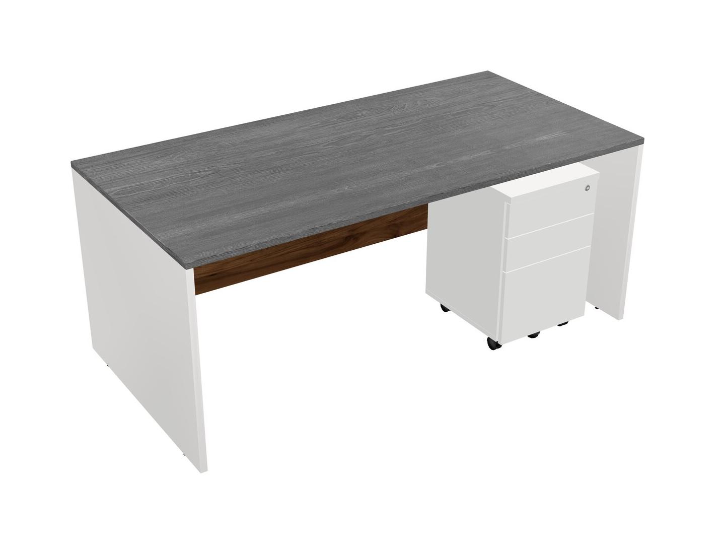 Bureau Rectangulaire Gris Avec Tiroirs Mobiles En Bois Blanc