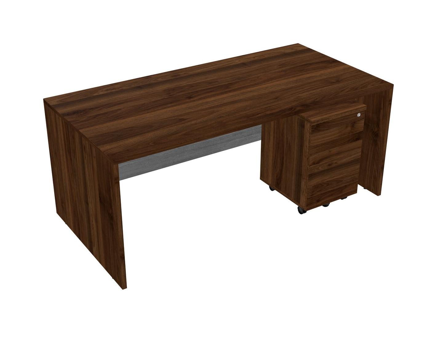 Bureau Rectangulaire En Noyer Columbia Avec Tiroirs Mobiles En Bois