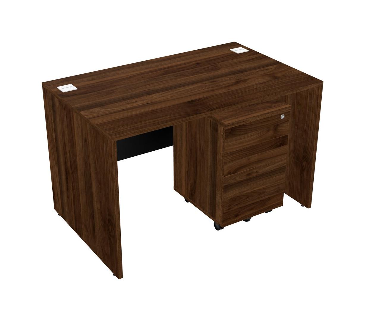 Bureau Rectangulaire En Noyer Columbia Avec Tiroirs Mobiles En Bois