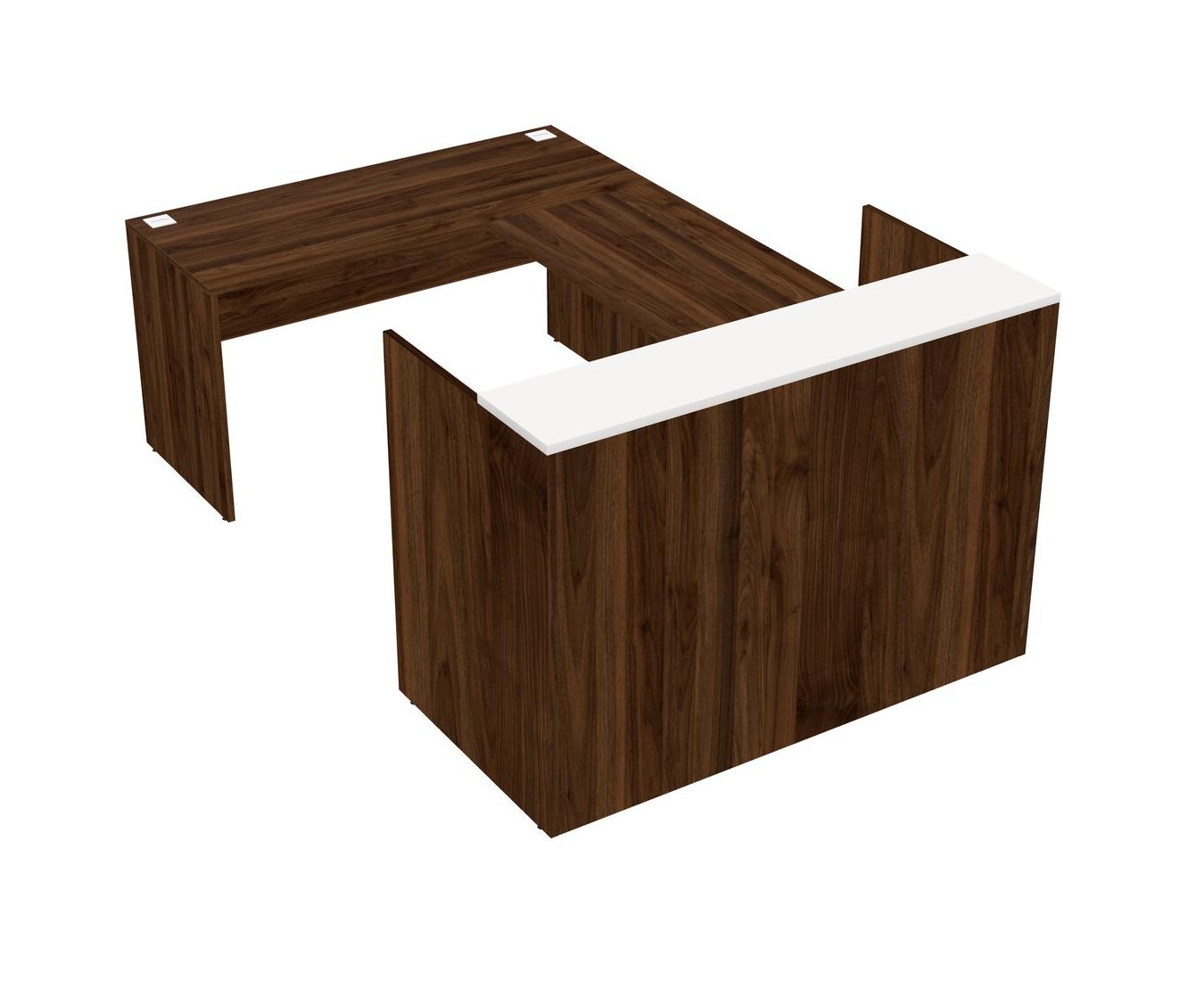 Comptoir D'accueil Modulable Blanc + Tiroirs Mobiles En Bois + Bureau Crédence