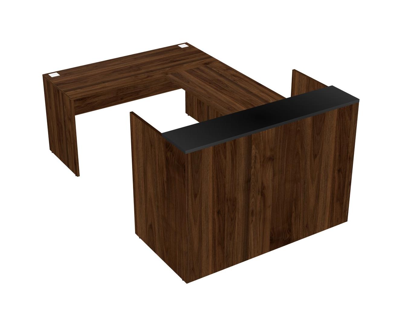Comptoir D'accueil Modulaire Noir + Tiroirs Mobiles En Bois + Bureau Crédence