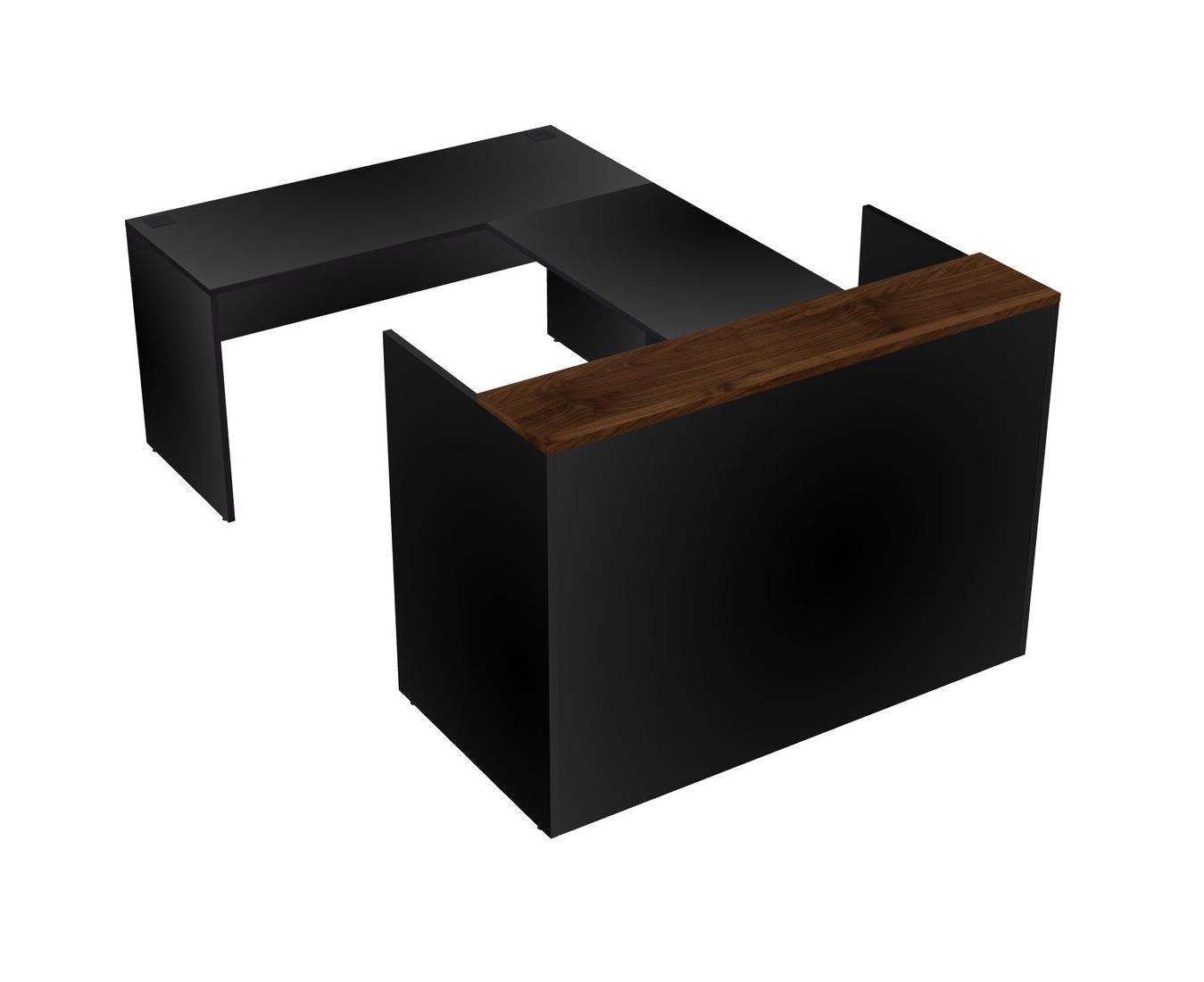 Comptoir D'accueil Modulaire En Noyer Columbia + Tiroirs Mobiles En Bois + Bureau Crédence