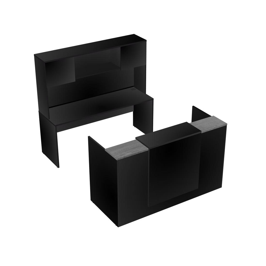 Bureau D'accueil Modulaire Gris + Tiroirs Mobiles En Bois + Bureau Crédence + Comptoir Flottant + Huche