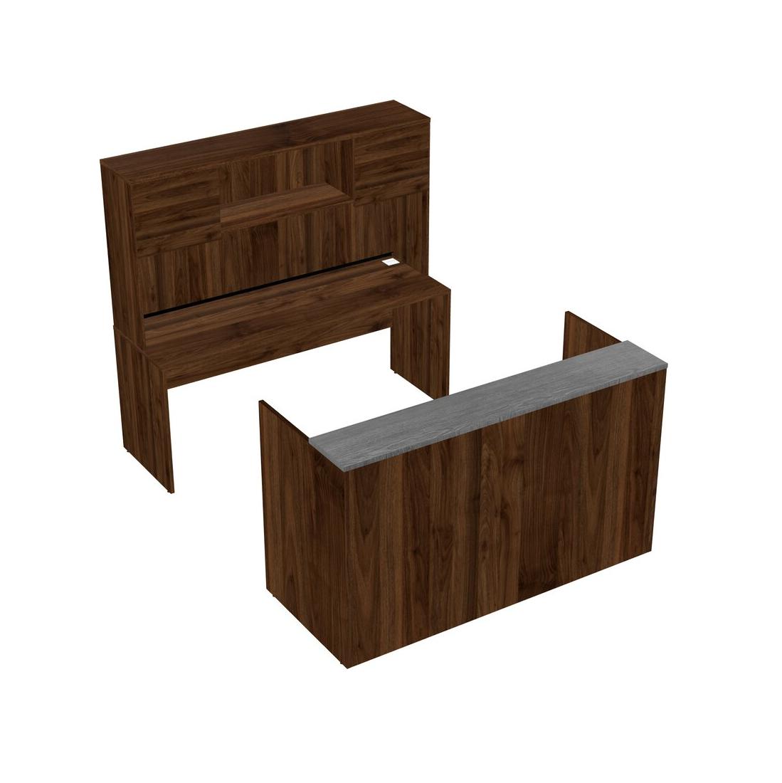 Bureau D'accueil Modulaire Gris + Bureau Crédence + Huche