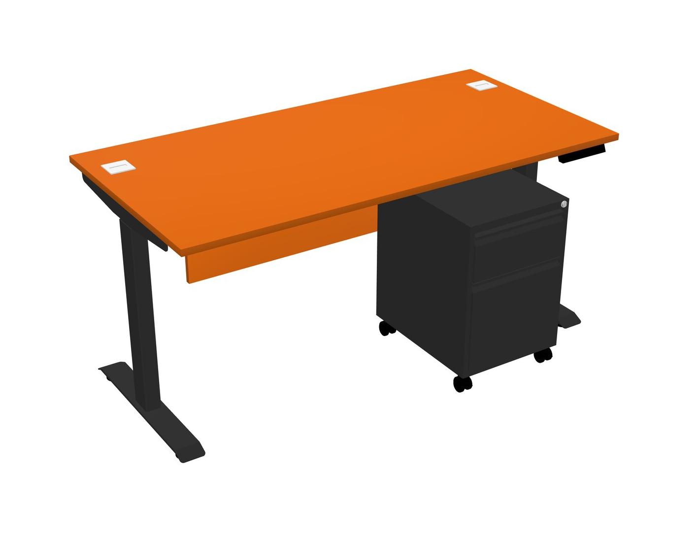 Orange Parallel Dual Motor Electric Height Adjustable Desk With Modesty Panel And Metal Mobile Drawers - Commercial Grade