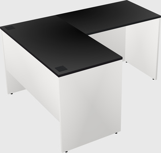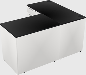 Black L-shaped Office Desk With White Hanging Drawers