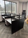 Grey Shared Rectangular Office Cubicle Panel System With Hanging Drawers For 4 Persons