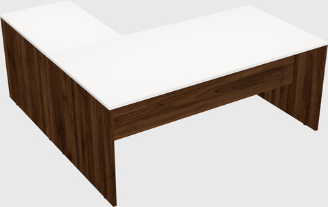 White L-shaped Office Desk With Columbia Walnut Hanging Drawers