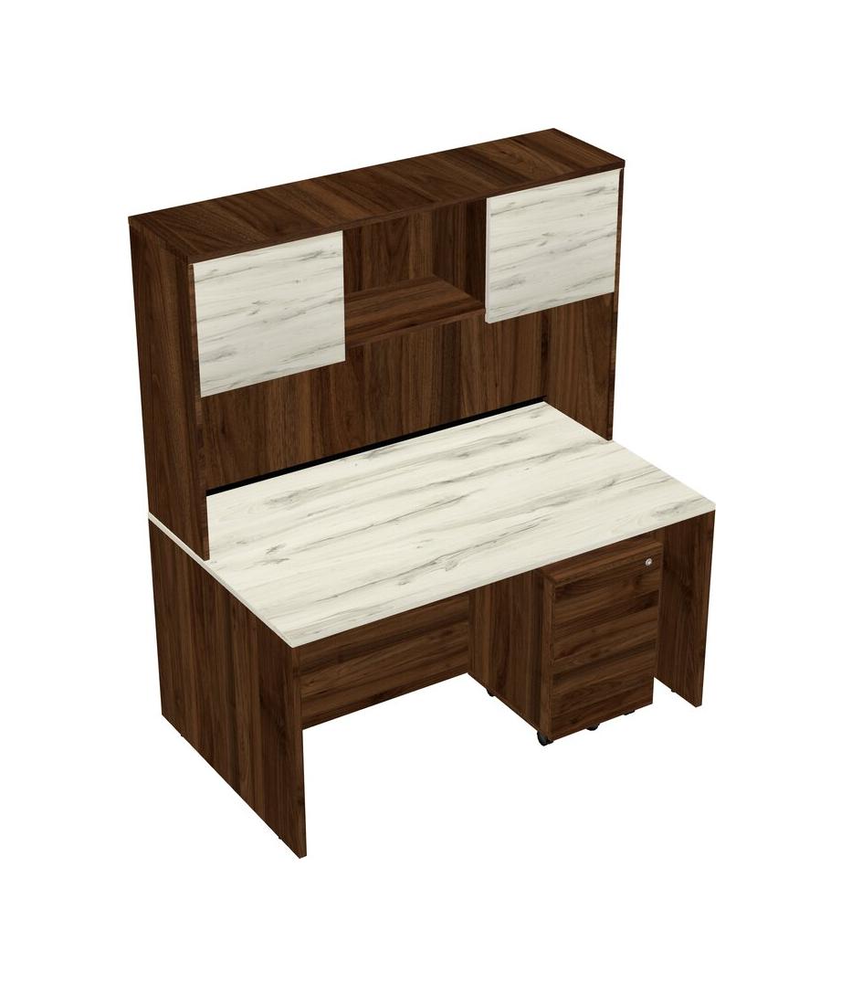 Heinne Holz Rectangular Office Desk Plus Columbia Walnut Wooden Mobile Drawers And Columbia Walnut Hutch